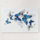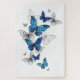 Flying Blue Butterflies Morpho und weiße Schmetterlinge auf einem hellen abstrakten Hintergrund. Morpho. Design mit blauen Schmetterlingen Morpho.