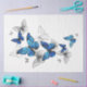 Flying Blue Butterflies Morpho und weiße Schmetterlinge auf einem hellen abstrakten Hintergrund. Morpho. Design mit blauen Schmetterlingen Morpho.