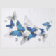 Flying Blue Butterflies Morpho und weiße Schmetterlinge auf einem hellen abstrakten Hintergrund. Morpho. Design mit blauen Schmetterlingen Morpho.