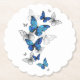 Flying Blue Butterflies Morpho und weiße Schmetterlinge auf einem hellen abstrakten Hintergrund. Morpho. Design mit blauen Schmetterlingen Morpho.