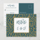 Blue Foliage Muster Wedding Menu Music RSVP Card Postkarte