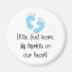 Blaue Babyfußabdrücke mit schwarzem Text, der lautet: "Kleine Füße verließ große Schlagabdrücke auf unserem Herzen!" auf neuen Baby-Boys oder zukünftigen Baby-Boy-T - Shirt, Tasse, Mousepads, Totentaschen, Tasten, Schlüsselanhänger und mehr!