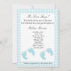 Diese niedliche Einladung ist ideal für Duschen der Frau mit zwei Jungen. Es ist der Hintergrund blau-weiße Karo. Es zeigt Cartoon Baby Fußspuren, beide Set blau. Sie können den gesamten Text anpassen.