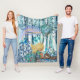 Genießen Sie diese skurrile naive Art Blue Forest Vlies Decke mit Futter mit blauen Blumen unter hohen Bäumen, Schmetterlinge fliegen um ein paar größere Blätter schwebend in der Luft und ein niedliches kleines Mädchen mit ein paar Lady Käfer komplettieren diese künstlerische Landschaft eines magischen Waldes. Es wird großartig sein, Ihr kleines Mädchenzimmer mit magischer Waldszene zu bereichern. Gutes Geschenk zum Geburtstag oder zu anderen Anlässen.