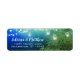 Blue Forest Mason Jar String of Lights gibt das Adressetikett zurück. Whimsical Magical Tree of Liebe Blue and Green Tree on Blue Tones and Lights with a Overlay of Liebe on this unique wood wedding..