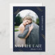 Elegant dunkelblau ein Foto mit großen Typografie Hochzeit speichern Sie das Datum Ankündigung. Diese moderne Ankündigung besticht durch ein bogenförmiges Foto und einen hübschen, schlichten, goldenen Weißabdruck. Bitte schauen Sie sich diese trendige Hochzeitskollektion an, um Hochzeitseinladungen zu koordinieren und weitere Chic-Farboptionen zu erhalten.