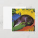 Dieses Design zeigt ein Ölgemälde des deutschen Expressionisten Franz Marc (1880-1916), der Gründungsmitglied des Blaue Reiters war, einer Zeitschrift, die später zum Synonym für den Künstlerkreis wurde, der daran mitarbeitet. Zu der Gruppe gehörte auch der Künstler Paul Klee. Das Gemälde wurde 1911 verabredet und ist eines der früheren Tierwerke von Marc, die in kräftig kontrastierenden Primärfarben und einem in blauen Farbtönen gehaltenen, sich zurücklegenden Fuchs dargestellt sind.