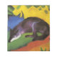Dieses Design zeigt ein Ölgemälde des deutschen Expressionisten Franz Marc (1880-1916), der Gründungsmitglied des Blaue Reiters war, einer Zeitschrift, die später zum Synonym für den Künstlerkreis wurde, der daran mitarbeitet. Zu der Gruppe gehörte auch der Künstler Paul Klee. Das Gemälde wurde 1911 verabredet und ist eines der früheren Tierwerke von Marc, die in kräftig kontrastierenden Primärfarben und einem in blauen Farbtönen gehaltenen, sich zurücklegenden Fuchs dargestellt sind.