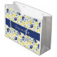 Stylish large gift bag featuring a blue French country lemon pattern with custom monogram or name. Perfect for adding a touch of charm to your gifts.