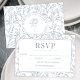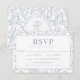 Moderne minimalistisch einfache staubblaue florale elegante Französisch Thema Hochzeit Antwort RSVP Karten mit Braut und Bräutigam Monogramm.