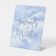 Dies ist ein Blue Funkelnd Clouds Süßigkeiten & Leckereien Party Pedestal Sign!