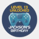 Blue Gamer Boy Gaming Level Uncked Birthday Runder Aufkleber