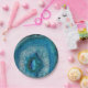 Hübscher, blauer und türkisfarbener Gode-Kristall-Stein, mit natürlichen Mustern von Edelsteinen und Wirbel. Wunderschönes modernes Motiv eines natürlichen Felsgesteins. Fotografisches Bild des Steins, ohne wirklichen Geoden oder Agate.