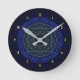 Geometrisches Moirè bilden das Muster dieser blauen Uhr.