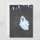 Feiern Sie Halloween mit unserer Baby-Geist-Baby-Dusche-Einladung mit einem blauen Geist, spukhafte Spinnen, Fledermäuse und einem auffallenden schwarzen Hintergrund! BBS277