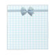 Dieses 5,5" x 6" Notizblock ist ideal für eine Babydusche und hat ein Bild von einem blauen, mit blauem Band gefesselten Baby-Gingham und einem hübschen blauen Bogen. Siehe die gesamte Auflistung der Kids’ Notepad in den SPECIAL-TOUCHS | Abschnitt Gastgeschenke.