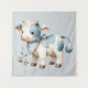 Blue Gingham Baby Cow Pastel Farm Aesthetic Wandteppich