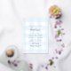 Diese Einladung beinhaltet ein klassisches Gingham-Design mit echten Goldfoliendetails. Die Überschrift des Skripts ist ein Bild, das nicht bearbeitet werden kann. Der andere Text ist vollständig editierbar. Für eine erweiterte Anpassung dieses Designs, wählen Sie einfach die Schaltfläche "Anpassen" oben.