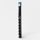 Modern trifft Land inspiriert iPhone 5 Case entworfen mit einem blau-weißen Gingham-Muster oben, einem schwarz-weißen Polka Punkt-Muster unten, und personalisiert mit Ihrem Namen oder benutzerdefinierten Text in Weiß über einem diagonalen schwarzen Streifen.