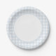 Die eleganten Teller aus blauem Gingham-Papier verleihen Ihrem Baby-Duschdekor eine Touch.