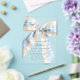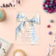 This beautiful acrylic baby shower invitation has a modern, minimalist design with a pastel blue and white gingham checks bow. The bow adds a playful yet sophisticated flair and is a popular choice for baby shower invitations. Below the bow, the text is arranged in a modern, minimal layout, using an elegant font choice. The text is kept simple, with the essential details of the event presented in a balanced and easy-to-read format. Delight your guests with this stylish acrylic baby shower invitation.