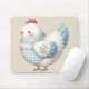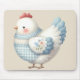 A soft cottagecore hen dressed in gentle blue gingham patterns, delicate floral accents, and sweet lace-inspired details creates a warm farmhouse mood filled with nostalgic charm. The pastel blues and creamy whites blend into a cozy, storybook style that feels whimsical, serene, and lovingly handcrafted, bringing a gentle folk aesthetic to life. AI generated artwork.