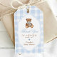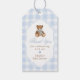 Blue Gingham Elegant Teddy Bear Baby Shower Geschenkanhänger
