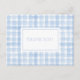 Eine klassische blaue Gingham Wasserfarbe mit einem Lorrel Wappen für das erste Monogramm Dank Postkarte