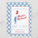 Eine klassische blaue Gingham und eine rote Upsherin Einladung, mit einem blauen Gingham-Muster auf der Rückseite.