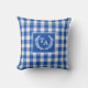 Elegant & rustikal Blue Gingham Monogram Wappen Throw Kissen.