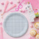Gingham Musterpapierteller in weiß und ländblau. Ändern Sie die Farbe Blau nach Wunsch, um Ihre Veranstaltung zu ergänzen.