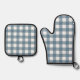 Blue Gingham Pattern Ofenhandschuh & Topflappen-Set