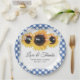 Blaue Gingham und Sonnenblumen Hochzeitspapiere Teller mit Sonnenblumen-Blume und Lichtern auf blauem Gingham-Hintergrund. Matching Artikel zur Ergänzung dieser rustikalen Blumenzettel Teller. Individualisieren Sie sich ganz einfach auf jeden Anlass.