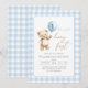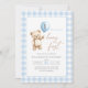 Blue Gingham Teddy Bear Balloon Boy 1st Birthday Einladung