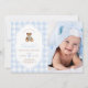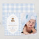 Blue Gingham Teddy Bear Beary First Birthday Photo Einladung