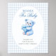BLUE GINGHAM TEDDY BEAR NEUTRAL BABY SHOWER POSTER