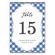 Personalisierte blaue Gingham Hochzeit Tischnummer Karte. Matching-Elemente verfügbar.