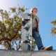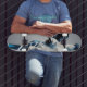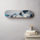 Die Hälfte einer blauen und grauen Giraffe wurde auf einem Skateboard gedruckt.