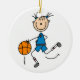 Ein Strichmännchen Basketballspieler mit blauer Uniform und Basketball auf Basketball-T - Shirt, Tasse, Karten, Aufklebern, Magneten, Totensäcken, Schlüsselanhängern, Pfannkuchen, Zeitschriften und anderen Basketballspielen!