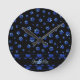 Blue glitter dog paw pattern, Monogram Runde Wanduhr