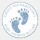 Mit diesem hübschen, blauen Glitzer-Aufkleber mit kleinen Babyfüßen verschönern Sie Ihre Babydusche mit einem stilvollen Glanz. Dieser personalisierte Aufkleber eignet sich hervorragend zum Versiegeln von Keksbeuteln, Gefälligkeitskisten oder Dankeschön-Umschlägen. Passen Sie sich mit dem Ehrengast und dem Duschdatum an, um einen polierten Sake zu schaffen, den die Gäste Liebe.