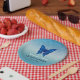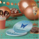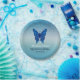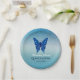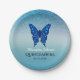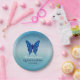 Moderne, mädchenhafte, aquamarine, blaue Glitzer Geburtstagsfeierplatte mit einzigartigem Schmetterling.