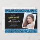 Blue Glitzer Foto Quinceañera Einladung enthält die Worte "Quinceañera" in einem lustigen Sans Serif Schriftart in Imitats Gold-Folie mit einem blauen Imitat Glitzer oben und unten und ein schwarzer Mitte Hintergrund. Die Einladung hat eine blaue, schwarze und Imitat goldene Streifen Streifen Muster Rückseite. Personalisieren Sie es, indem Sie den Platzhalter-Text ersetzen und das Foto für die Auswahl/den Platzhalter durch Ihr eigenes Foto ersetzen. Für weitere Optionen, wie zum Beispiel den Schriftart zu ändern und ihn zu vergrößern oder zu verändern, klicken Sie auf den Button "Anpassen". *Bitte beachten Sie, dass das Zazzle-Wasserzeichen, das in der Zoomvorschau angezeigt wird, NICHT auf dem gedruckten Endprodukt erscheint. © Rosewood and Citrus