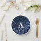 Blue Glitzer White Monogram Initial Individuelle N Pappteller