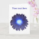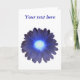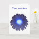 Diese hübsche Grußkarte zeigt ein Foto einer riesigen Blume, die manipuliert wurde, um eine wunderschöne Blume mit einem leuchtend blauen Zentrum und zart gefärbten Blütenblättern zu schaffen, die an ihren Kanten fast schwarz werden. Auf der Vorderseite der Karte befindet sich ein blau anpassbarer Text, der es Ihnen leicht macht, diese Karte für jeden Anlass und jeden Ihrer Wahl zu personalisieren.