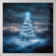 Blue Glowing Winter Night Christmas Tree Poster