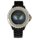 Blue Glows Angel Wings auf schwarzem Hintergrund Armbanduhr