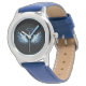 Blue Glows Angel Wings auf schwarzem Hintergrund Armbanduhr