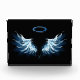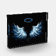 Blue Glows Angel Wings auf schwarzem Hintergrund Fotoblock