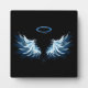 Blue Glows Angel Wings auf schwarzem Hintergrund Fotoplatte
